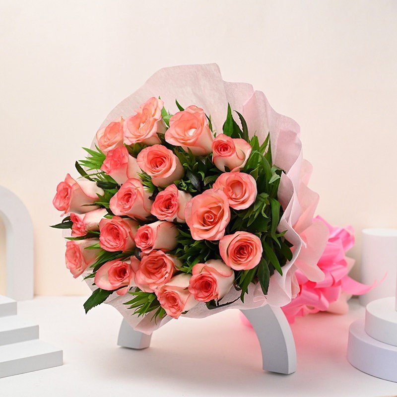 A delicate creation of pure beauty, this enchanting bouquet features 20 fresh pink roses Local, wrapped in soft pink non-woven paper that enhances their natural charm. Each rose, with its velvety petals, symbolizes admiration, sweetness, and grace—making this arrangement a heartfelt expression of love and affection.