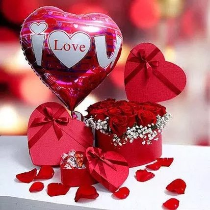 Roses and hearts being two iconic symbol of love are embodied in beautiful arrangement. This large headed red roses nestling in a heart-shaped gift box makes a fabulous romantic arrangement. The finishing touch is given with a stylish red ribbon. Paired with adorable small heart shaped box filled with chocolate, treat your dear ones with something extra special and chocolaty. Embellished with heart shaped I Love U balloon, there is no sweeter way to express your affections than this gift hamper.