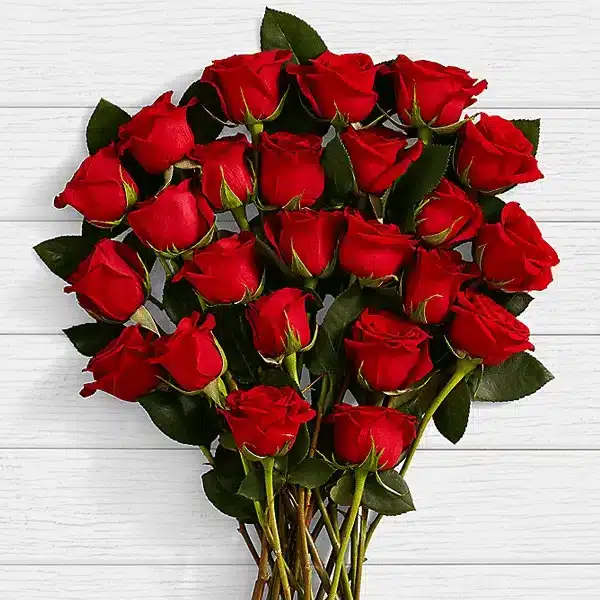 Capture the essence of love with our exquisite bouquet featuring 10 long stemmed red roses elegantly complemented by lush green fillers. Each rose, handpicked for its beauty and perfection, speaks volumes of your affection and devotion.
